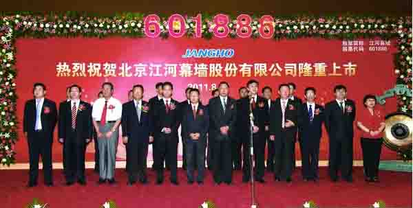 2011年8月18日9時30分,中國最具技術(shù)實力、最具成長性的高端幕墻企業(yè)、全球建筑幕墻行業(yè)的主要領(lǐng)導(dǎo)者與領(lǐng)先企業(yè)——江河幕墻(股票代碼:601886)在上海證券交易所A股主板隆重鳴鑼開市,開盤漲勢喜人。此舉標志著江河幕墻歷經(jīng)12年的迅猛發(fā)展,歷史性的站在了中國A股主板上市公司的行列;新的機遇和挑戰(zhàn),必將使江河幕墻邁向新的輝煌,不斷走向卓越!