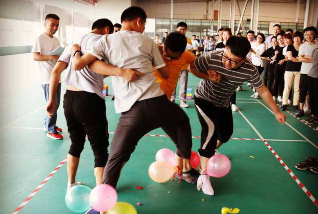 再就是說說趣味運動會項目吧,有“閃電脫兔、飛燕游龍、飛箸移珠、極地投籃、心心相印、芝麻開門、水漫金山、神筆馬良、歡樂爆破”等比賽活動,讓我記憶最深刻的是歡樂爆破---踩氣球活動,在這個活動中,大家你爭我搶,氣氛異?;钴S,一旁的觀眾激動地吶喊助威,同事們在爆破的聲音中,體會到了此次趣味運動會的樂趣。第一項“歡樂爆破”項目點燃了全場的氣氛,場上選手既要想方設法把對方的氣球踩破,又要千方百計地保護好綁在自己腿上的氣球,與此同時,為了不犯規(guī)又不能越線,還要提高和綁在一起同伴的默契度,綜合比較,很考驗一個人的綜合實力。無論是哪一個項目,從同事們臉上露出的笑容,就可以體會出那種快樂的釋放。